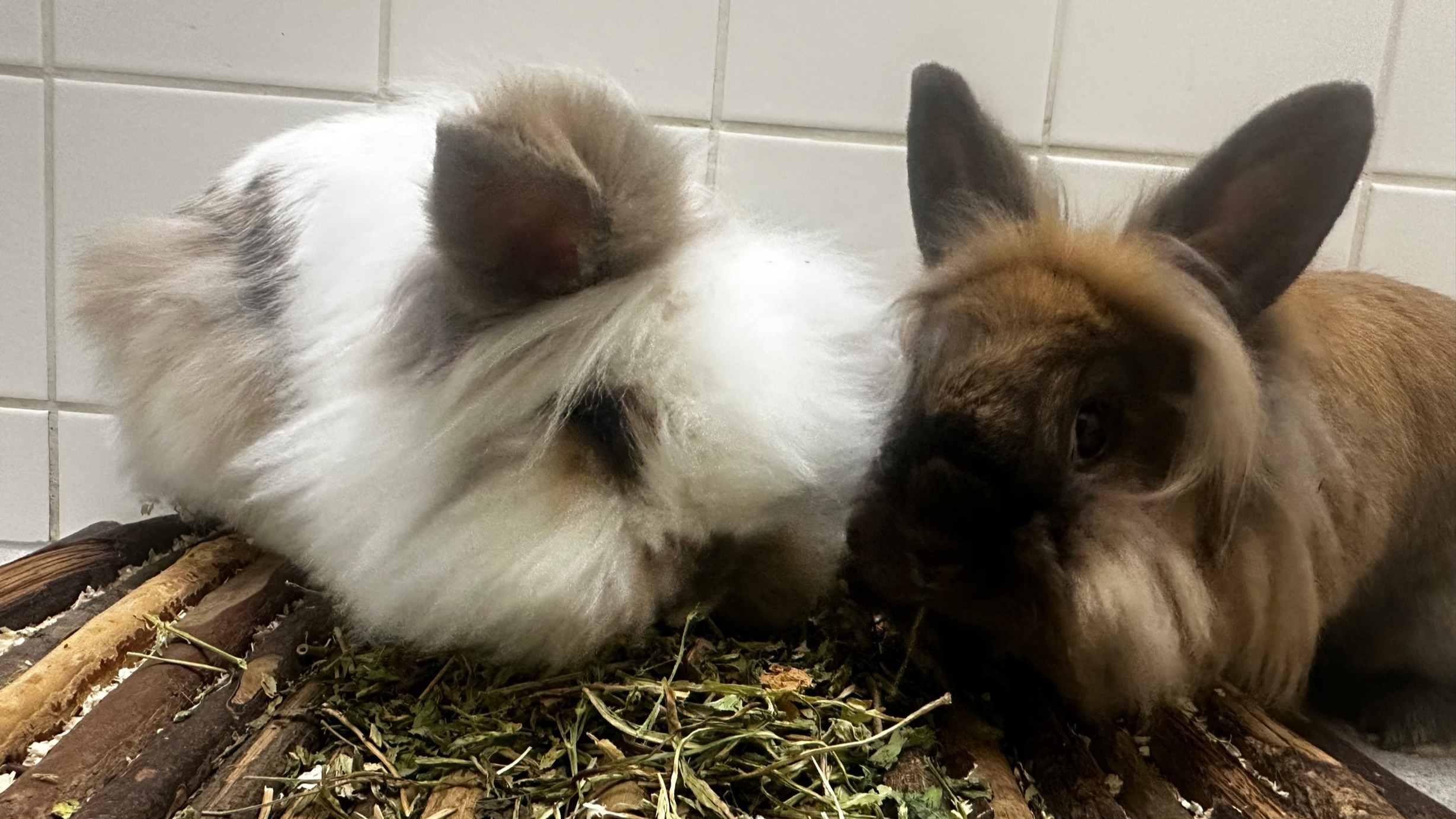 Brownie und Cookie sind zwei weibliche Löwenkopfkaninchen, etwa im Jahr 2023 geboren. Die beiden verstehen sich sehr gut und werden daher nur zusammen vermittelt.