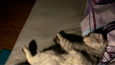 Ja und wenn’s zum Schlafen geht, lieg ich immer beim Frauli, ganz entspannt wie ihr sehen könnt. Eigentlich mag ich so intime Fotos ja nicht, aber ihr kennt mich ja auch schon gut und daher ist das nicht schlimm.